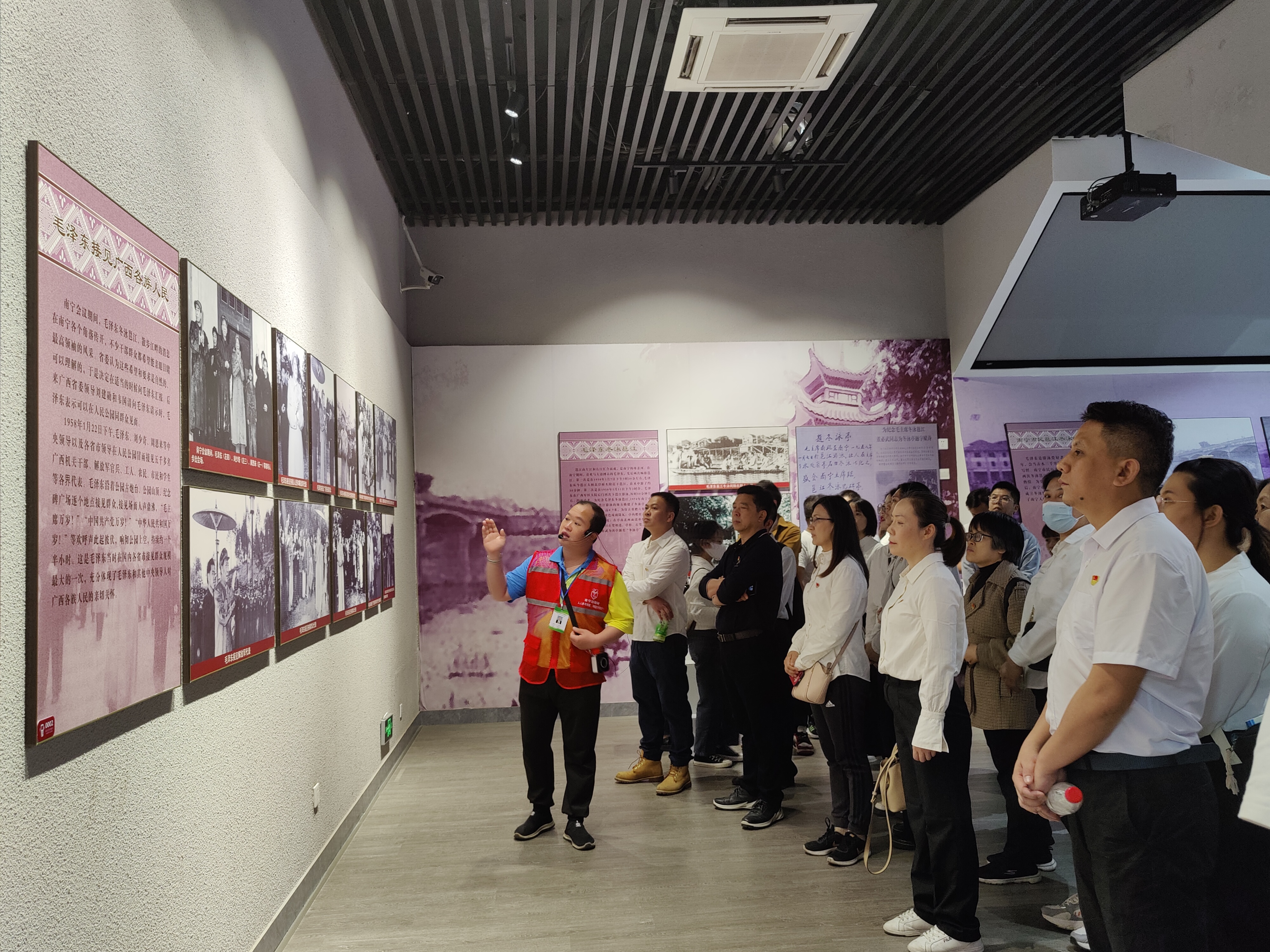 “我志愿加入中國共產(chǎn)黨……隨時(shí)準備為黨和人民犧牲一切,永不叛黨?!痹诿飨右?jiàn)廣西各族人民紀念館,全體人員在領(lǐng)誓人的帶領(lǐng)下舉起右拳,面對鮮紅的黨旗作出莊嚴宣誓。隨后在紀念館講解員引導下,通過(guò)一張張照片,一件件實(shí)物,見(jiàn)證毛主席對廣西各族人民的親切關(guān)懷。