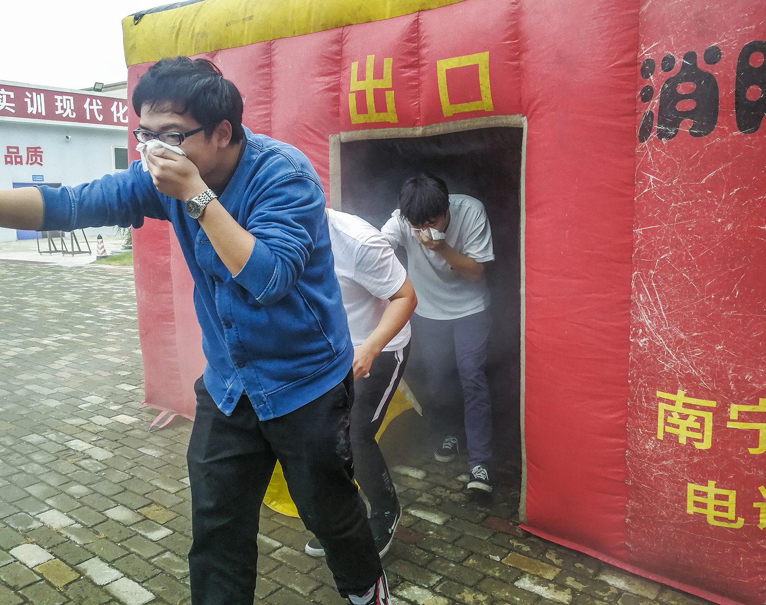 在實(shí)操演練階段,大家首先進(jìn)行了消防疏散逃生演練。在消防老師的指導下,大家4人一組,按照老師教授的方法,進(jìn)入事先準備好的演練賬篷,親自體會(huì )火場(chǎng)逃生技巧。逃生演練后,參培人員還先后學(xué)習了消防水帶的安裝使用方法,干粉滅火器、二氧化碳滅火器的使用方法并進(jìn)行現場(chǎng)體驗使用。整個(gè)實(shí)操演練組織有序,大家積極參與,配合默契。