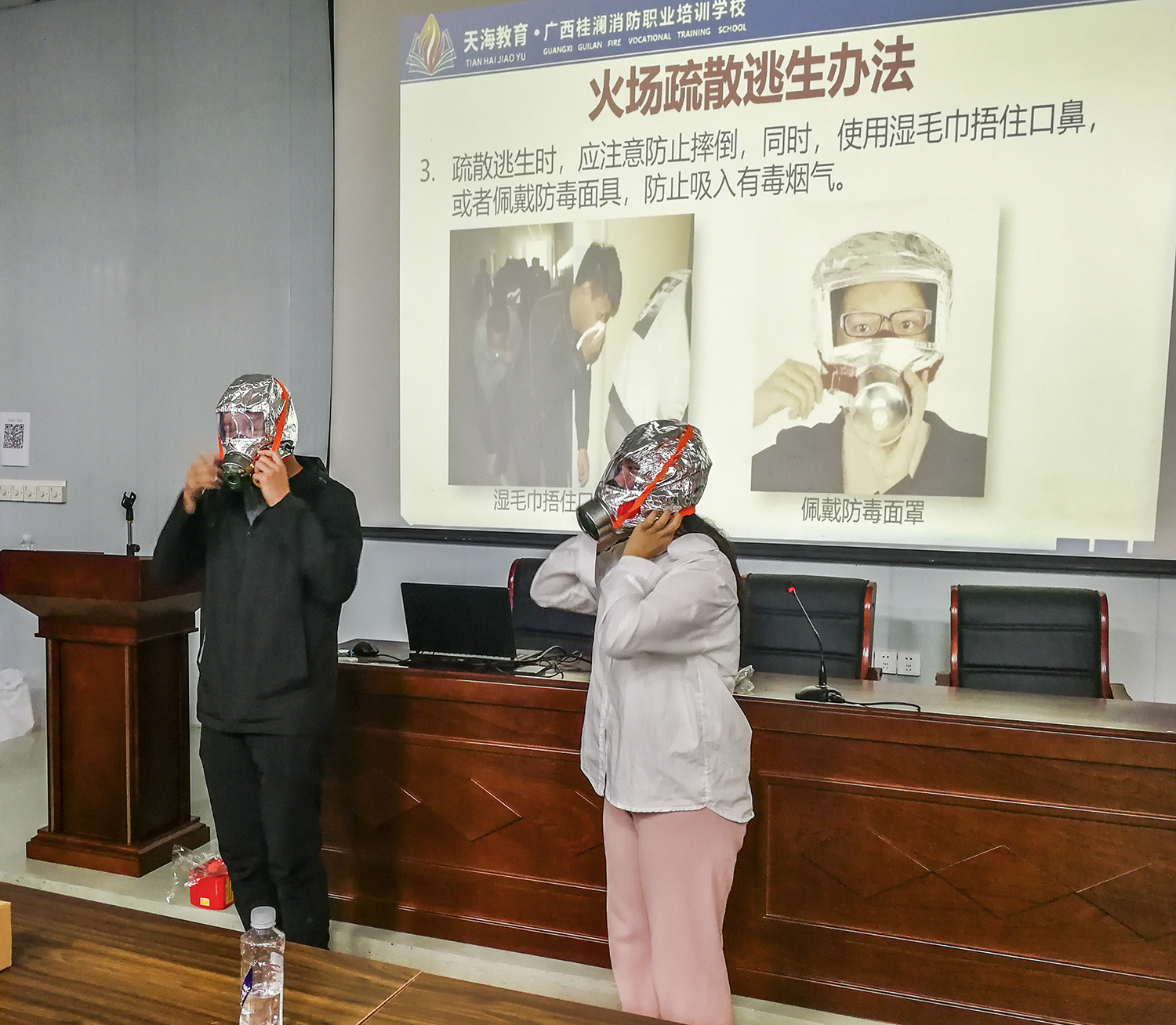 圖二為現場(chǎng)體驗佩戴防毒面具。