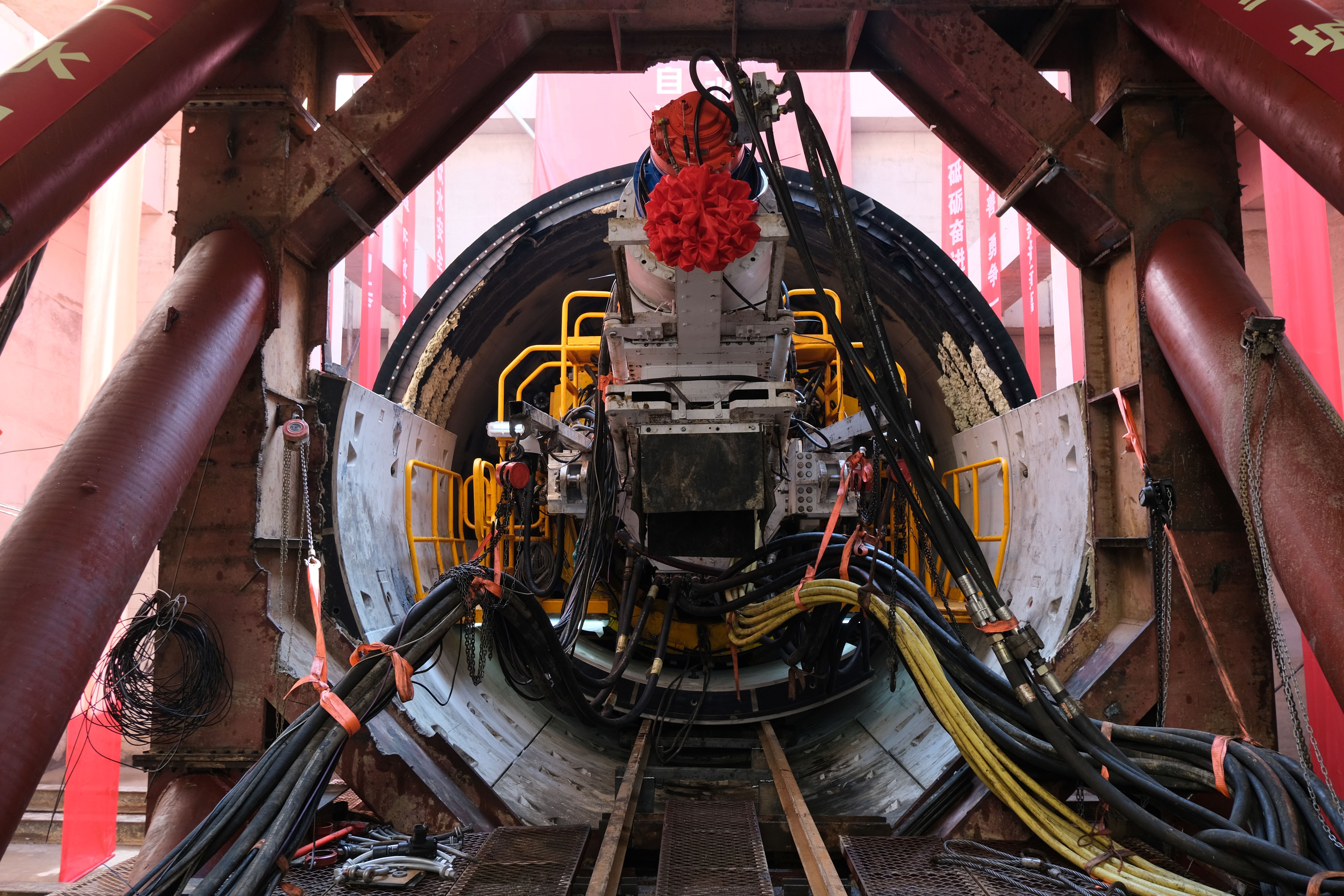 此次始發(fā)的“井岡山號”盾構機全長(cháng)155米,開(kāi)挖直徑為5.68米,能夠實(shí)現水平250米轉彎半徑。該型號的盾構機適用于越江隧道,能克服地層含水量大、上方有水體等特殊環(huán)境帶來(lái)的挑戰。盾構推進(jìn)時(shí)開(kāi)挖下來(lái)的渣土可以通過(guò)泥水循環(huán)系統泵送到地面進(jìn)行分離,分離出的渣土直接外運,泥水還可循環(huán)重復利用。