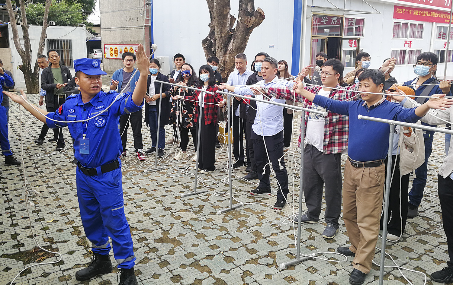 圖三為現場(chǎng)打繩結實(shí)操培訓。