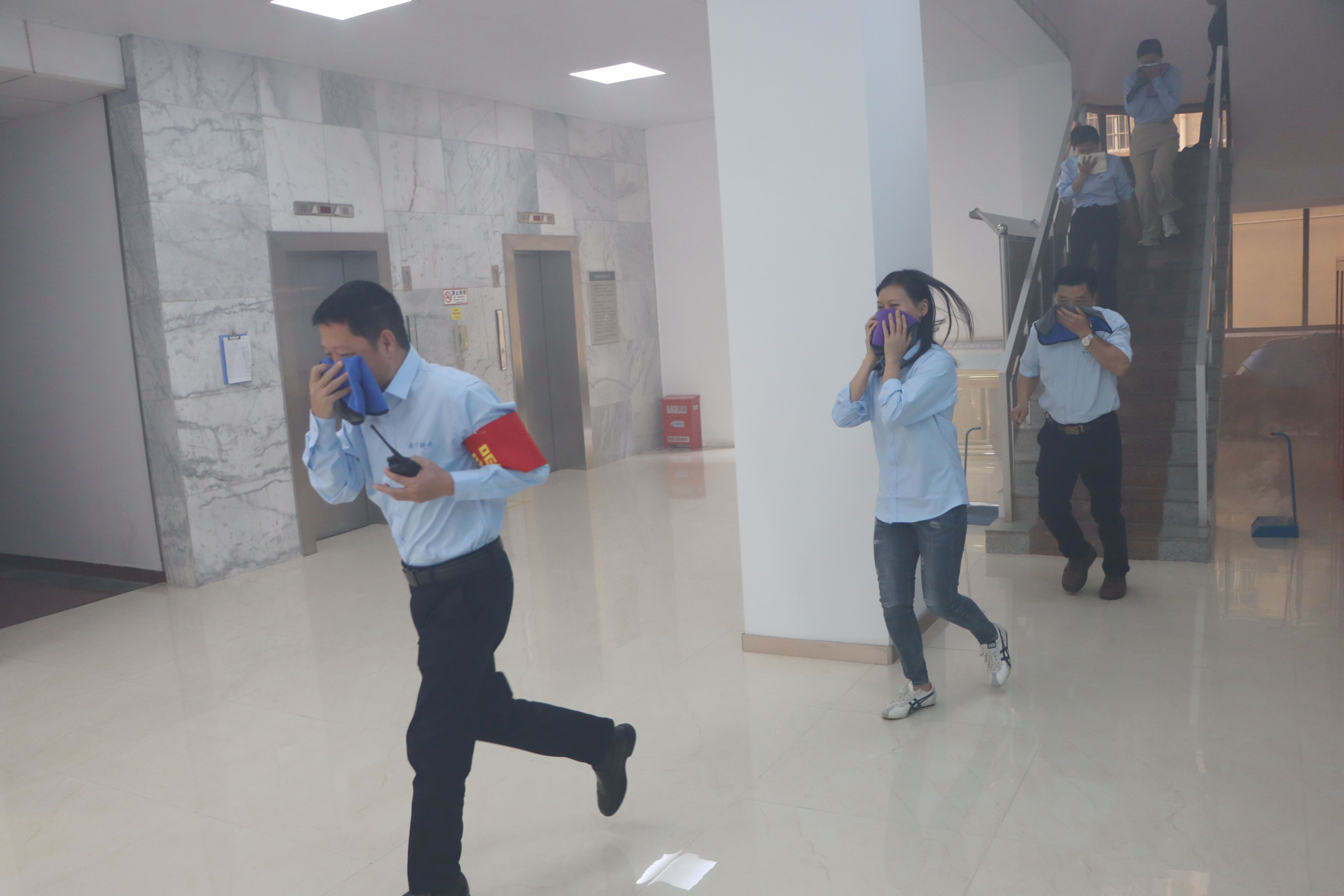 圖為員工通過(guò)應急疏散樓梯進(jìn)行緊急疏散